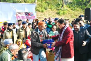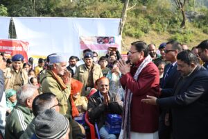 2 जनवरी जनसेवा को समर्पित संकल्प “जन-जन की सरकार, जन-जन के द्वार” अभियान के अंतर्गत शुक्रवार को रायपुर ब्लॉक की न्याय पंचायत खैरी मानसिंह में आयोजित बहुउद्देशीय शिविर में मुख्यमंत्री श्री पुष्कर सिंह धामी ने स्वयं सहभागिता की। मुख्यमंत्री ने शिविर में स्थापित विभिन्न विभागीय स्टॉलों का निरीक्षण किया और योजनाओं का लाभ पंक्ति में अंतिम व्यक्ति तक पहुँचाने के निर्देश अधिकारियों को दिए।
